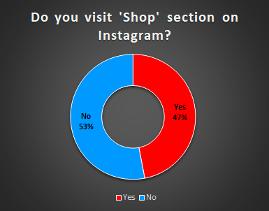 - More than half of the respondents (53%) said that they do not visit Instagram’s Shop section. While 47% of the respondents said they visit the section.