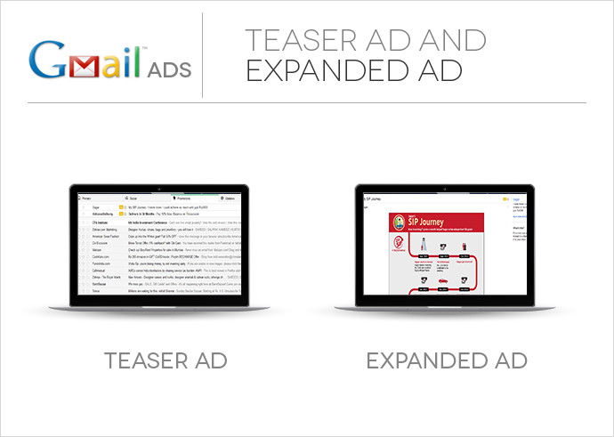 A typical Gmail Ad unit consists of two parts – A teaser Ad and An Expanded Ad Unit. The teaser creates the initial interest amongst the user. Once the user clicks the teaser, the fully expanded ad, which looks like an email, is served.
