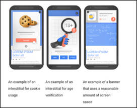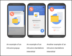 As stated by Google, the below mentioned pop-ups can have a negative effect on the website by making content less accessible.