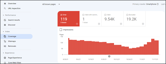 Google Search Console provides an overview of the indexed pages. Indexation can be checked by clicking on the option ‘Coverage’ under the ‘Index’ section.