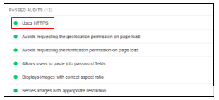- You can use Google’s Lighthouse browser plugin to verify if HTTPS has been used across the website. With the plugin installed, click ‘Generate Report’. Once the report id is generated, check under Best Practices > Passed Audits
